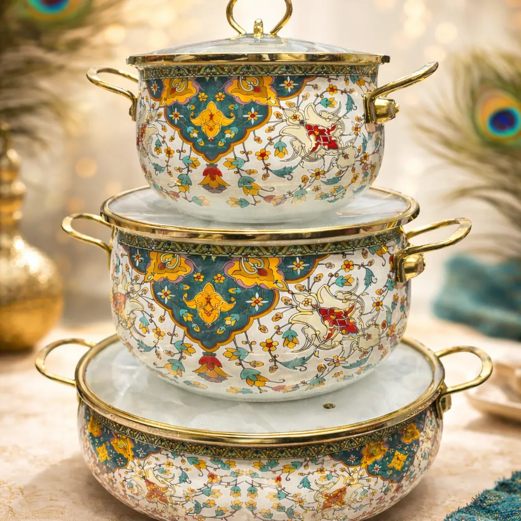 🍲 Elegant Peacock Enamel Stack Set